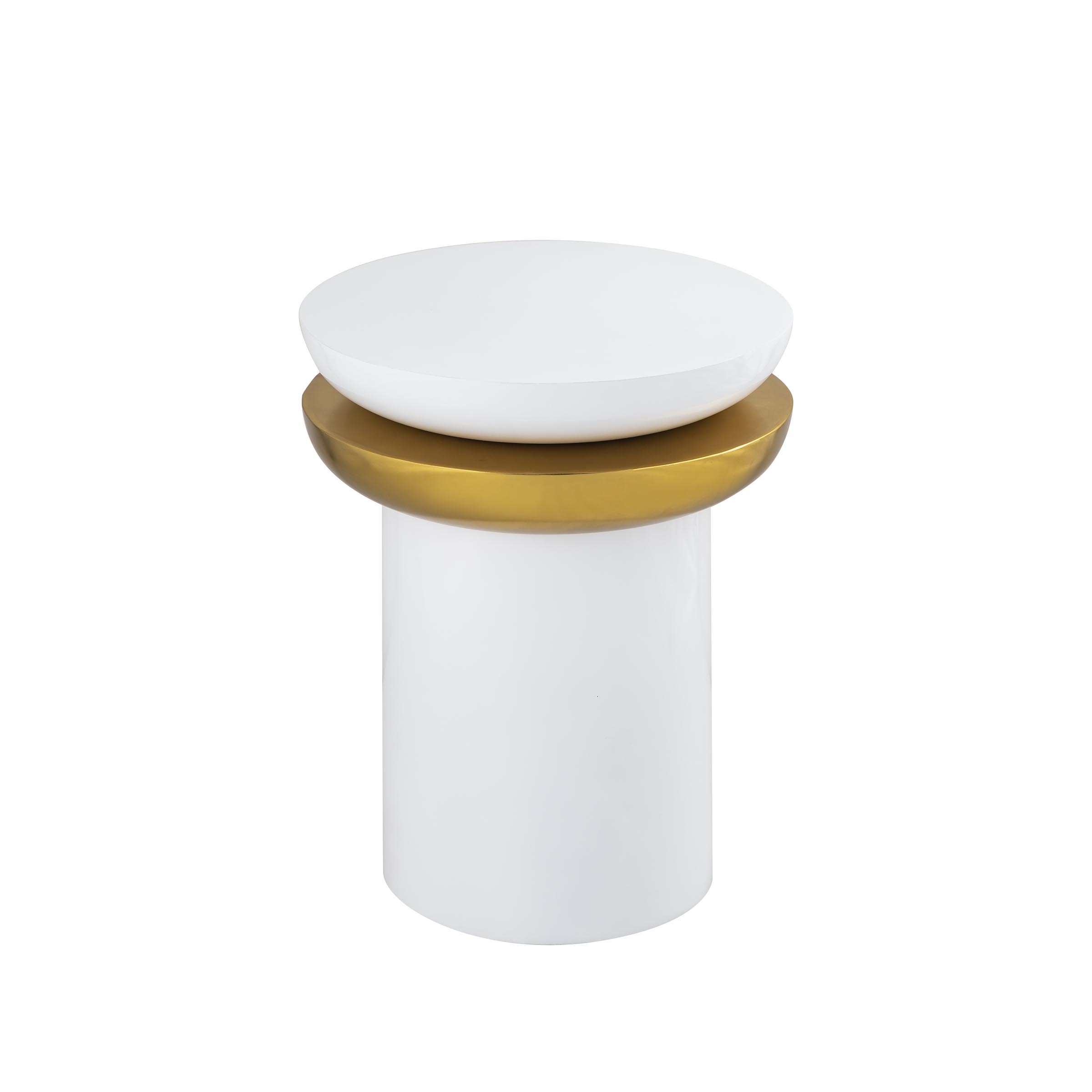 Whether sidled up beside your sofa or standing in as a nightstand in the master suite, this end table is always a stylish stage. Crafted from manufactured wood and steel, it strikes a circular silhouette and boasts a two-tone finish with hues of white and gold for a modern look. Up top, it showcases a tray-inspired top that helps keep accent pieces from sliding off.