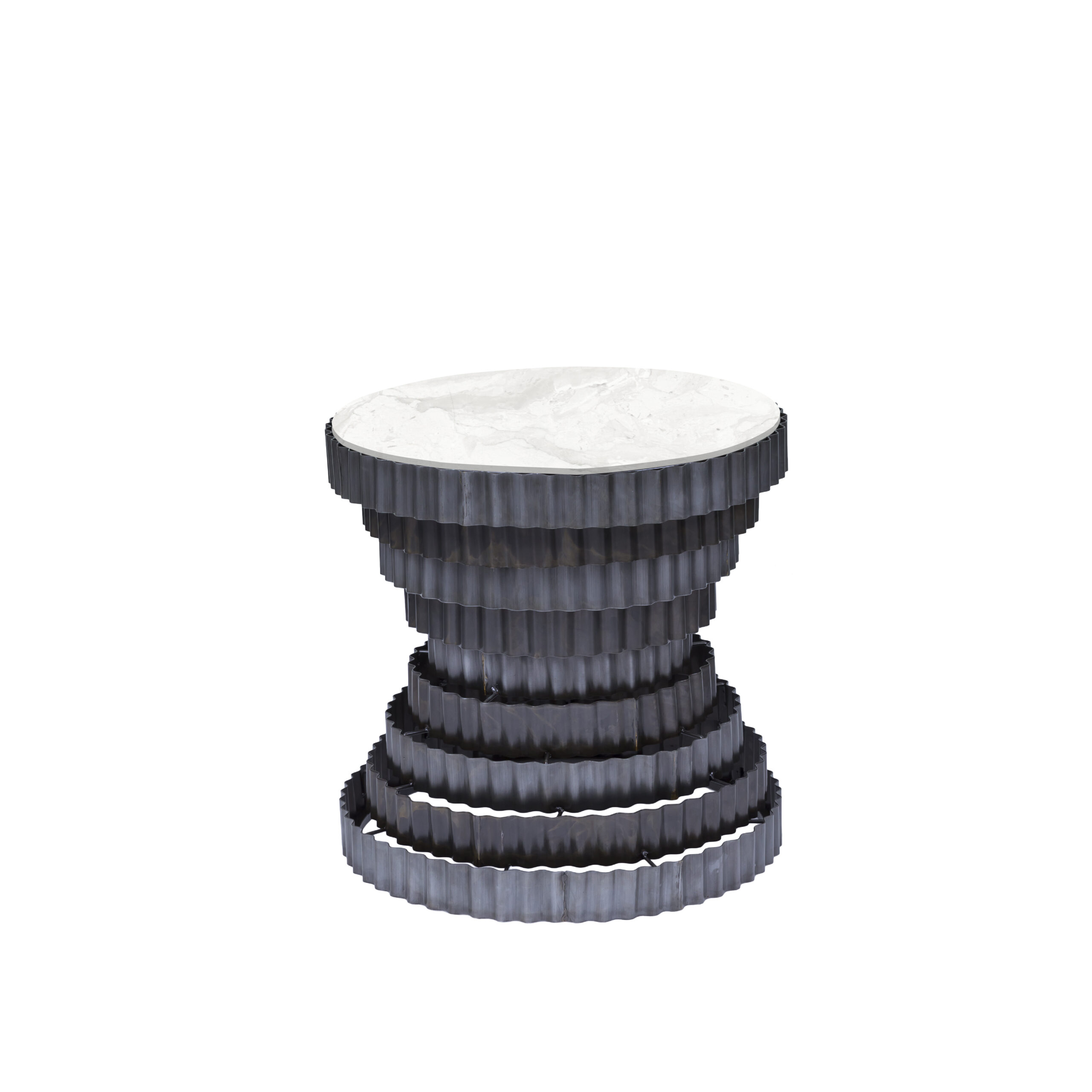 Showcasing a unique take on industrial design, the Mosha Coffee table makes a strong, yet subtle style statement. Floating layers of channeled iron replace conventional design, while the marble top brings elegance and class.