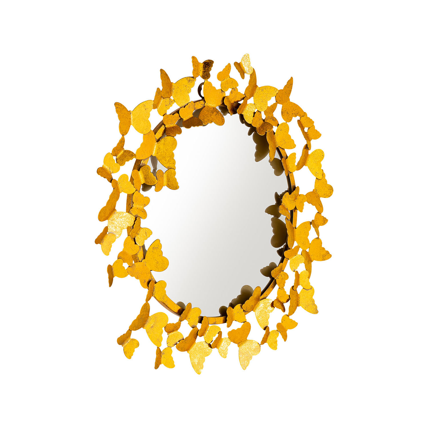 Butterfly Round Wall Mirror Gold Foil Antiqued Butterflies Unique Living Room, Bedroom, Bathroom Design Big Wall Boho Contemporary wall hanging mirror.